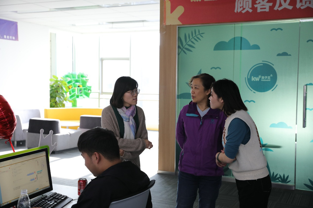 10月15日上午,信息工程系主任王玮、移动商务专业负责人施炜以及移动商务专业教师一行5人前往孩子王儿童股份有限公司进行专业调研,客户服务部张大娟和人力资源部陈雨馨进行了接待