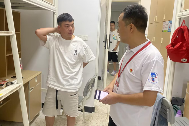 在赵学洪副院长和系部班子的带领下,党员教师走进新生宿舍,询问新生的适应情况,引导新生提升防诈骗安全意识,聆听新生的心声,解答新生的问题,为新生送去暖心的慰问。