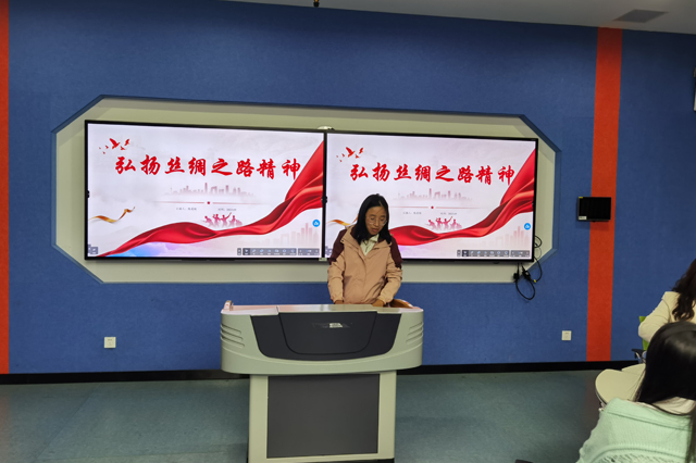 陈莉娟同志深入浅出地讲述了丝绸之路历史背景及其精神。“丝路精神”即丝绸之路精神的简称,是丝路经济带建设的重要理念之一,也是中国传统文化的重要组成部分。它主张的是“和谐共存、互学互鉴、合作共赢”的理念,强调沿线国家之间的合作与互助。