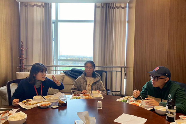 在互动交流环节中,同学们依次介绍了自己的个人情况,从学习、生活、爱好、风俗和民族文化等不同角度分享了自己在学校的所学所获、所思所感,畅谈未来规划,并对食堂饭菜、环境卫生、校园安全、公寓维修等方面的改进积极建言献策。同学们纷纷对学校的关怀表达了感恩之情,对老师和同学的帮助表示由衷地感谢。