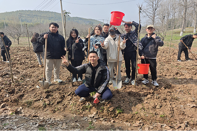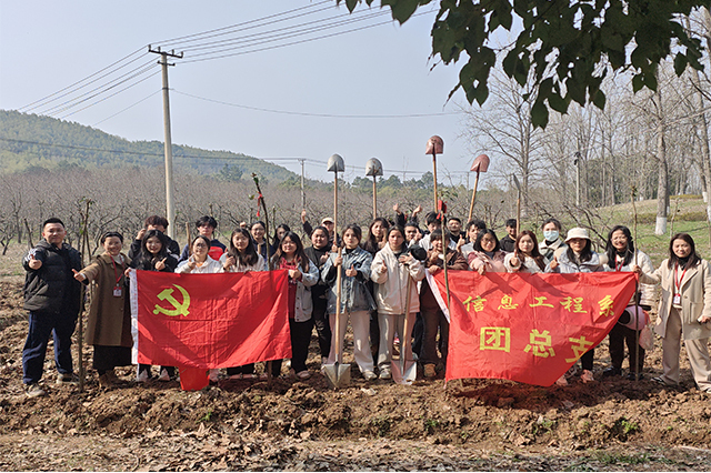 人间最美三月天,春花烂漫展新颜。春天带着绿色的气息向我们走来,春风吹绿了枝头上的嫩芽,吹绿了地上的小草,也吹动了同学们的热情。今年是中国第46个植树节,为弘扬中华传统文化,增强师生的环保意识和生态文明观念,信息工程系师生继续积极响应环保志愿行的号召,再次踏上征途,于3月12日下午前往高淳游子山开展以“植”此青绿,“树”梦远航为主题的党建带团建植树节活动。此次植树活动,由信息工程系党支部书记胡枫带队,学工干事郝麒、团总支书记沈歆岩、负责心理老师王林林、就业干事陈莉娟、全体辅导员、团学骨干和家庭困难学生共同参与。