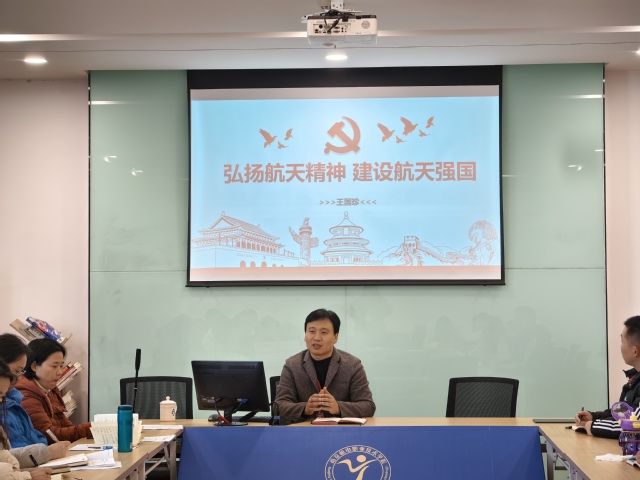 为弘扬航天精神,助力建设航天强国,12月26日,信息工程系党支部在弘德楼602会议室开展主题政治教育活动。此次教育活动由信息工程系主任王国珍主讲,全体党员参加。