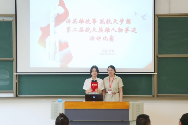 6月20日,信息工程系党支部“讲英雄故事,筑航天梦想”第二届航天英雄人物事迹演讲比赛决赛,在勤学楼102教室圆满收官。此次比赛旨在通过讲述航天英雄故事,激发青年学子的航天梦想与奋斗热情。本次决赛还邀请了信息工程系党支部书记陈雪、学工干事郝麒、卫星通信与导航技术专业负责人黄威、卫星通信与导航技术专业教师卢玉皖担任评委,他们认真聆听每位选手的演讲,并给予了专业而中肯的点评。更多学子在航天英雄精神的感召中汲取奋进力量。