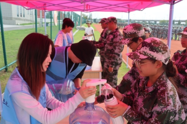 军训的严格训练离不开后勤保障的贴心支持。为缓解新生训练时的口渴与疲惫,信息工程系学生会自发组建了 “爱心供水队”,每天准时在后勤补给点集合,每当训练间隙,学生会的同学们便迅速行动,为新生们递上清凉的饮用水,同时主动询问大家的身体状况,用细致的服务传递着系部的温暖。