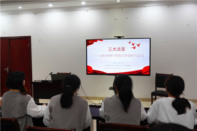 张会长以新四军军长陈毅总结的新四军抗战“三大法宝”为切入点,详细阐释了新四军抗战过程中的军队素养和战斗宗旨,让全体与会师生切实感受到新四军铁军精神激励人心、催人奋进的巨大感召力。“战斗胜利是解决一切问题的枢纽”“模范守纪律”“同志间的团结”是陈毅军长总结的新四军抗战胜利的“三大法宝”。这“三大法宝”时至今日结合中国实际同样可以转化为我们个人发展、国家强盛的“三大法宝”。