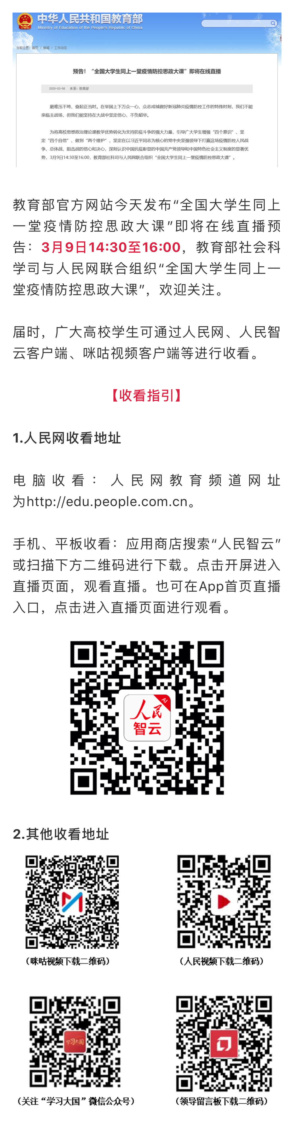 预告!“全国大学生同上一堂疫情防控思政大课”即将在线直播