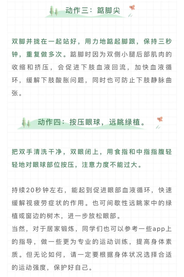 【健康贴士】叮!居家课间锻炼指南到!