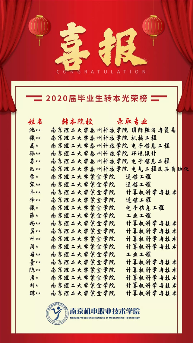 【喜报】我院2020届毕业生转本名单