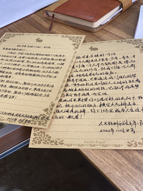 知道你们有此烦恼,在你们到来之前,我们就已经为你们准备好了一份既特别又暖心的礼物——信笺。你或许会感到难以置信,一封信能特殊到哪里去呢?接下来,我就来揭秘啦。其一,在于结构,每一个信封、每一张卡片都是我们精挑细选,将精美绝伦的图案、娟秀工整的文字和最为传统的一种形式相结合,向你们送上我们的牵挂与祝福;其二,在于内容,这每一封信都是由我们各个系辅导员、优秀学生干部以及帅气美丽的学长学姐亲手书写的,其中不仅包含了他们多年来丰富的经验,还蕴藏着他们衷心的祝福。如果你收到了这个“小确幸”,一定要认真阅读,牢记前辈们的叮嘱哦……