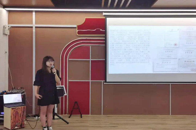 主讲人汪可人同学着眼于自身作为“双创先锋班”成员的身份,结合自身参加各类比赛、活动的丰富经历与在场的同学们分享了自我的收获与提升。她首先呼吁同学们要积极加入各类学生组织和学院特色班成员,以此为踏板,在不同的平台上展现自我的能力。同时,要积极参加各类职业技能大赛等,以此提升的不仅仅是自我实践能力,更多的也是对思想意志的打造、磨练。最后,她告诫同学们“把时间花在哪里,结果就在哪里”,希望在场的每一位同学们能够在自己的征途上展露光彩。