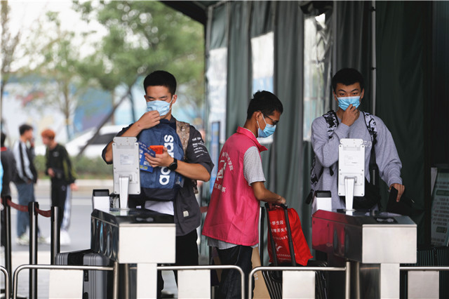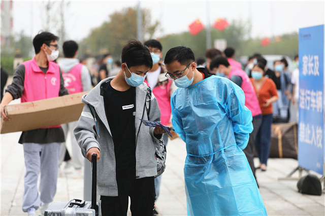 根据疫情防控常态化要求,学校制定了疫情防控期间新生报到方案,进行细致周密部署,新生报到前完成每日打卡申报和健康申报。为保证新生报到顺畅,在新生入学前,学校推送了报到指南,让新生知晓报到流程、住宿安排、来校行车路线等。报到现场,新生进入校门时有序核对身份信息、体温检测、查验苏康码和行程码,无异常方可进入校园完成各项报到手续。一系列防疫措施为新生入校筑起防疫检测保障,共同守护师生的平安健康。