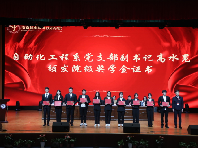 自动化工程系党支部副书记高水冕为学校奖学金获得者代表颁奖。