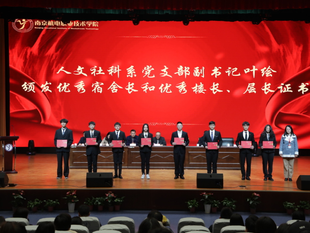 人文社科系党支部副书记叶绘为优秀宿舍长和优秀楼长、层长代表颁奖。