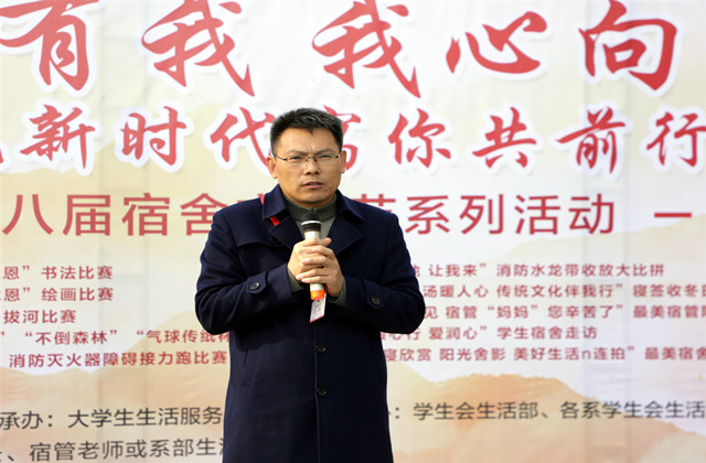为厚植我校师生浓浓的爱国情怀,营造出有爱、有趣、有情怀的宿舍文化氛围,建设好“理念新、机制新、面貌新、成效新”新机电学院,提高我校宿舍文明建设,充分调动、发挥学生的主观能动性,增强团队合作能力和宿舍成员之间的凝聚力,逐步深化宿舍文化生活内涵。2021年12月21日下午13时,“强国有我 我心向党”之宿说新时代寓你共前行第八届宿舍文化节开幕式在学生公寓润思生活服务站前广场顺利举行。我校党委委员、副院长赵学洪,学生工作处处长张宝中,后勤处处长周志刚,东吴物业项目经理薛蒙以及各系部书记,学生干事,全体辅导员老师、物业管理员和学工处老师出席了开幕式。