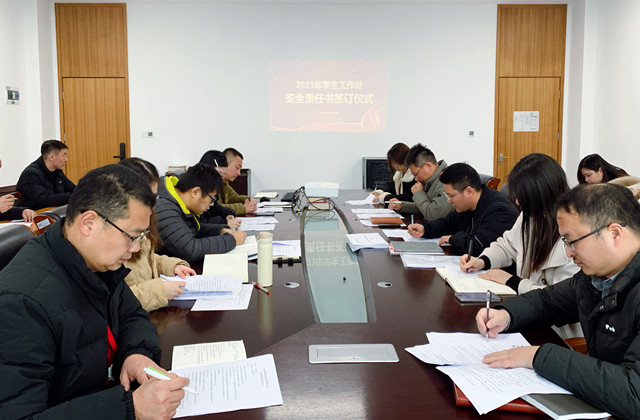 为进一步增强教职工安全责任意识,全面落实人人都是安全员的安全责任制,切实做好安全教育和管理工作,确保新的一年学生管理工作有序、顺利进行,2023年2月18日,学生工作处在星梦馆209会议室召开了2023年安全工作会议暨安全责任书签订仪式,学生工作处全体人员参加会议。