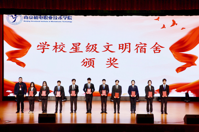机械工程系党支部副书记李杰为学校星级文明宿舍代表颁奖