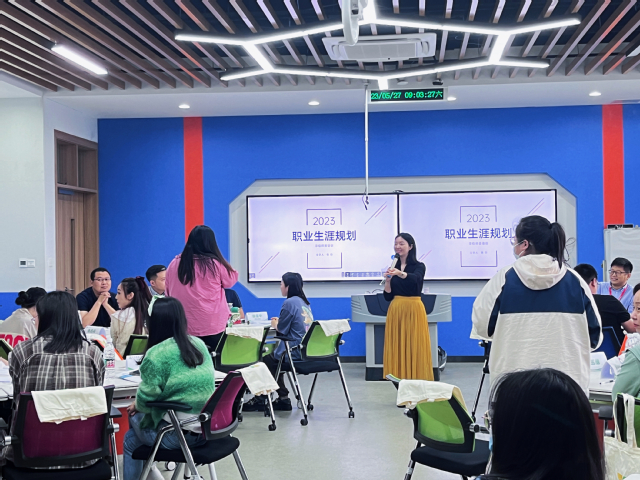 本次培训紧密结合教育部大学生职业发展与就业指导课程教学要求,通过案例分析、小组讨论、互动游戏、角色扮演等教学方式,围绕“职业生涯规划课导论、自我认知与职业定位、职业认知及评估、决策能力培养、教师专业化成长”等五大模块为老师们提供系统讲解,引导学员掌握并创造生动活泼的职业生涯规划课堂教学方式,提高课堂授课质量。通过培训,参培老师对职业生涯规划的理论、方法及课程应用有了更加深入的了解。培训过程中,老师们热情高涨,积极参与教学互动,课堂气氛热烈。