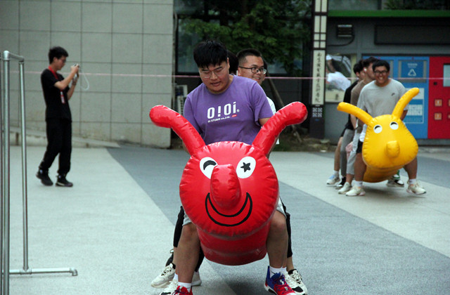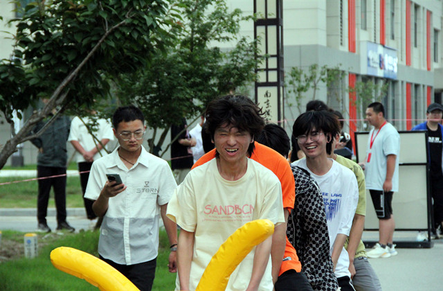 毛毛虫向前冲比赛是一项经典的充气运动比赛项目,本次比赛以宿舍为单位,5人/组,采用折返跑的比赛形式,两组同时进行,以尾部到达终点计时,用时最少的小组获胜。随着裁判员的哨声响起比赛正式开始,场上的队伍铆足了劲,场下的队友们鼓劲呐喊,在加油声中、在欢呼声中,活动被推向了高潮,同学们的脸上更是乐开了花。
