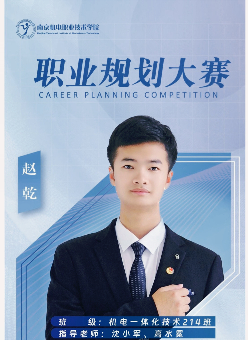 赵乾,就读于乐玩体育,自动化工程系机电一体化技术专业 2021级学生。在校担任自动化工程系学生会主席、机电214班长等职务。曾获2022-2023学年“国家奖学金”;2021-2022学年“国家励志奖学金”;2023年度江苏省“三好学生”;第十八届“挑战杯”全国大学生课外学术科技作品竞赛江苏省二等奖;2023年江苏省职业院校创新创业大赛三等奖;第八届江苏省“互联网+”大学生创新创业大赛三等奖等荣誉。
