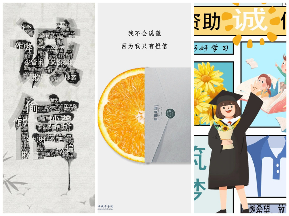 学校于5月1日至6月5日举办了以“诚信做人,守信做事”为主题的诚信资助海报征集大赛,100余名学生参赛提交作品。同学们的作品主题鲜明、风格各异,从不同角度展现大学生对资助政策的理解以及对诚信的深刻领悟。学生资助管理中心通过学校公众号和展板展示获奖作品。同学们更加领悟和践行“诚信”二字,勤奋学习,自立自强,以实际行动回报党和国家的资助之恩。