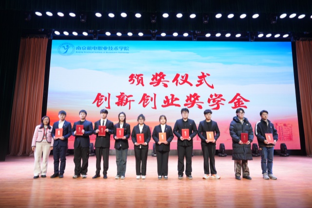 机械工程系党支部书记胡枫为学校奖学金获奖代表颁奖。