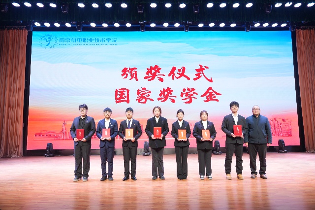 党委副书记、副校长赵学洪为国家奖学金获奖者代表颁奖。