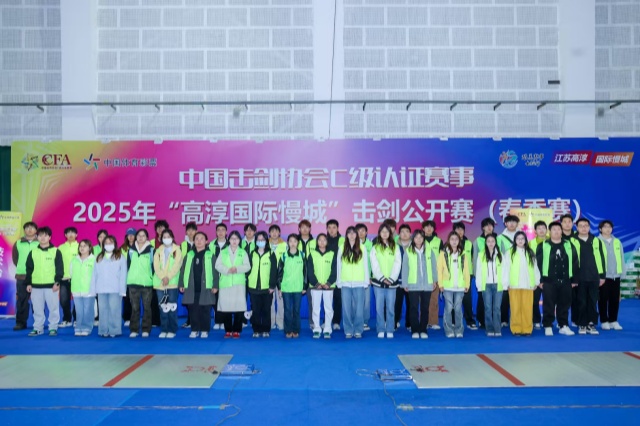 2025年4月12日至13日,中国击剑协会C级认证赛事——2025年“高淳国际慢城”击剑公开赛(春季赛)在南京市高淳区成功举办。赛事现场,一群身着统一服装的志愿者以专业、热情的服务赢得了组委会和参赛选手的一致好评。这些志愿者全部来自乐玩体育,是我校学生资助管理中心精心组织的40名受资助学生。