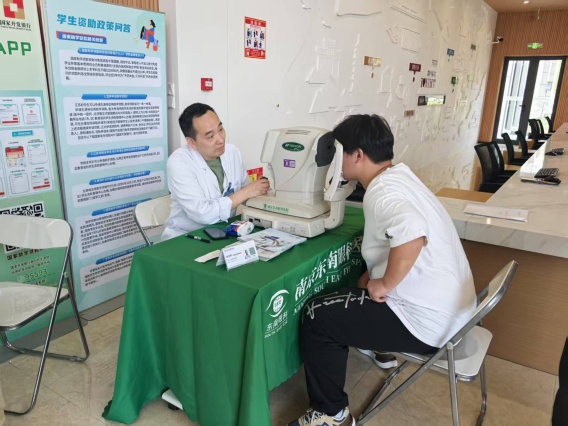 校民兵连在润泽苑广场进行了精彩的队列展示,他们挺拔的军姿、整齐的步伐、响亮的口号吸引了同学们驻足观看。民兵连部分成员还投入到征兵宣传工作中,通过发放宣传材料、分享精彩军旅经历等方式,向同学们展示了参军入伍的光荣与自豪。校人武部还邀请了东南眼科医院的医护人员,在“一站式”学生社区为学生们免费进行了视力检测、眼压测量、眼底检查等眼科检查项目。