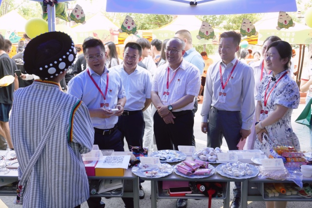 高淳区委统战部领导和学校领导莅临活动现场,与红石榴班少数民族学生亲切交流。学校党委书记、校长周庆礼一行饶有兴致地参观了各民族文化展台,对现场展示的民族美食特色给予高度赞赏,还不时询问同学们的品尝感受。周书记特别驻足,与身着传统傈僳族服饰的何同学亲切交谈,详细询问其服饰的文化特色,对傈僳族传统服饰所蕴含的民族智慧表示赞赏。交流中,周书记提议:“学校食堂可以每月推出特色民族美食窗口,让同学们在学校也能品尝到家乡的味道。”这一提议赢得了在场师生的热烈掌声。学校将通过多种形式进一步做好各民族学生教育服务工作,让民族团结之花在校园绚丽绽放。