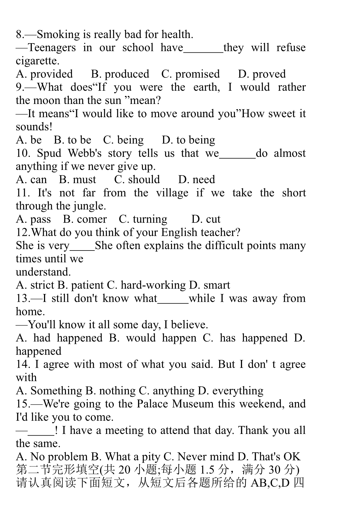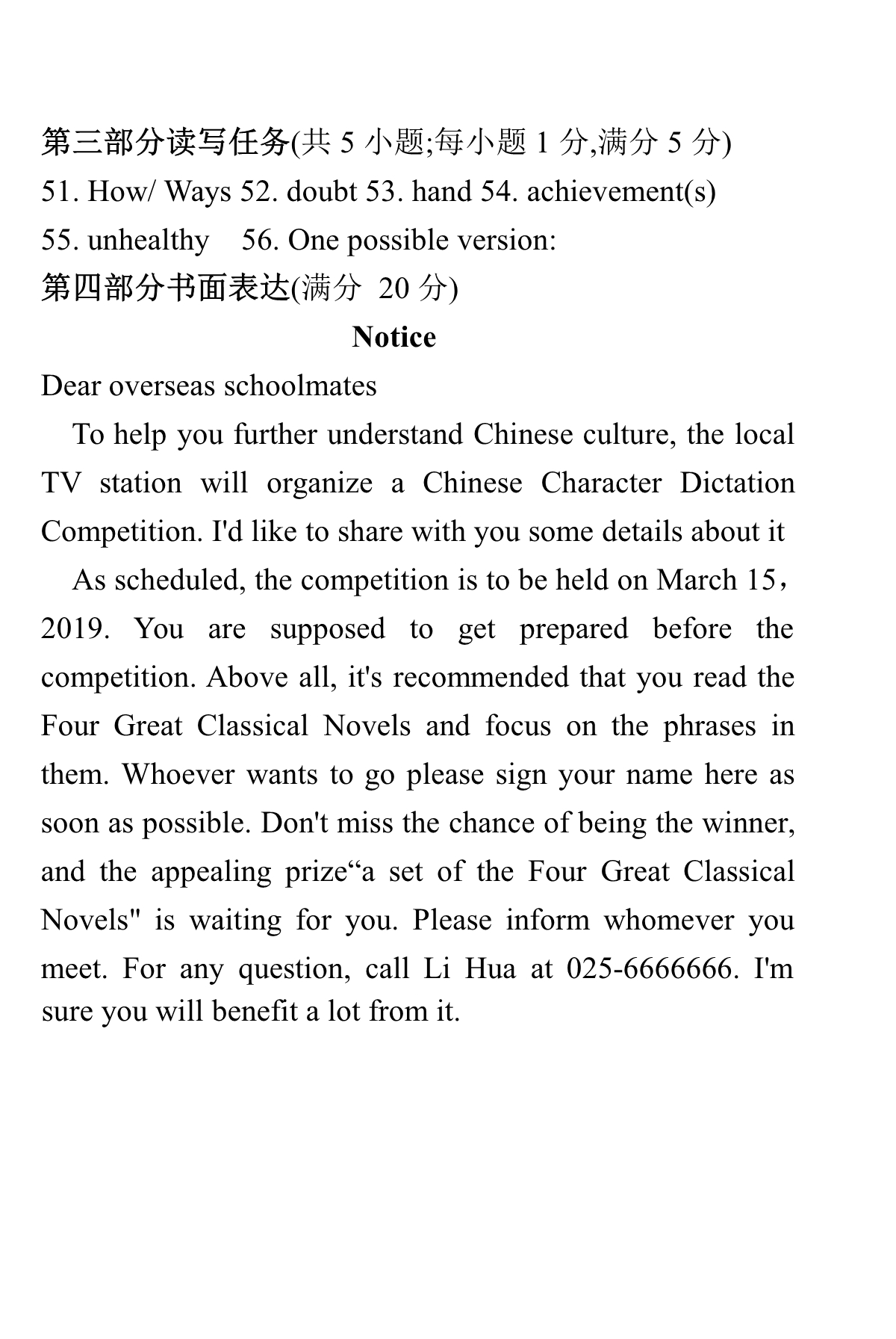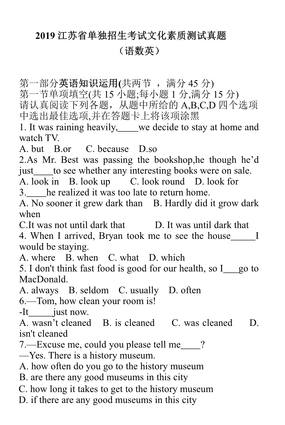 点击下载2019年江苏省提前招生真题卷(英语)