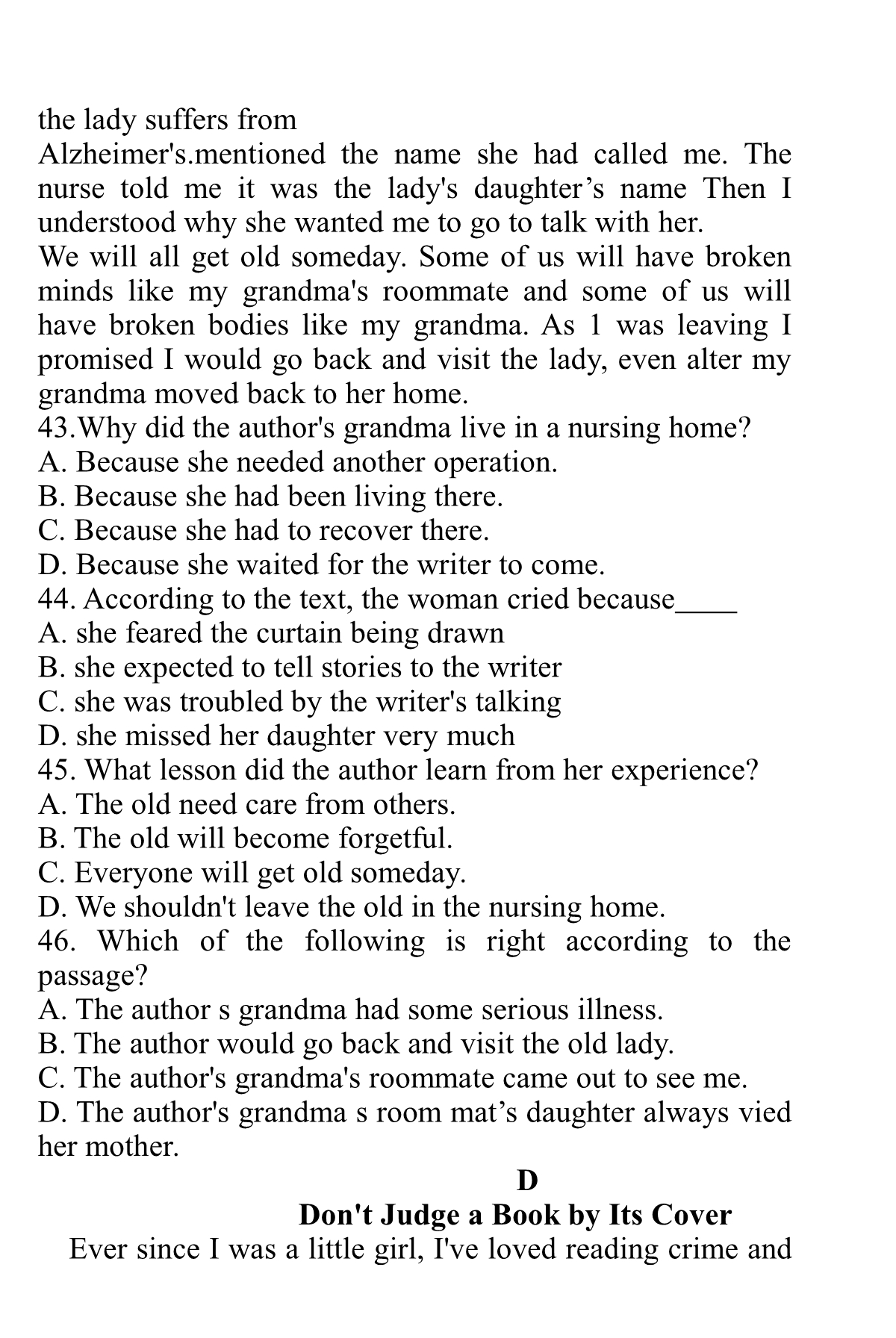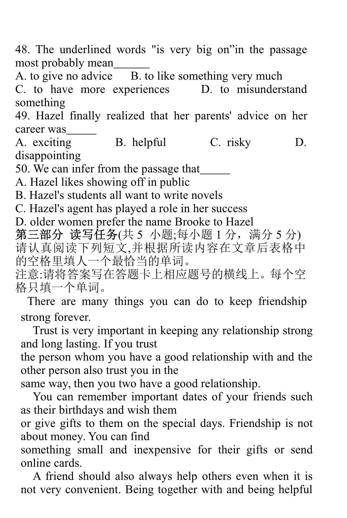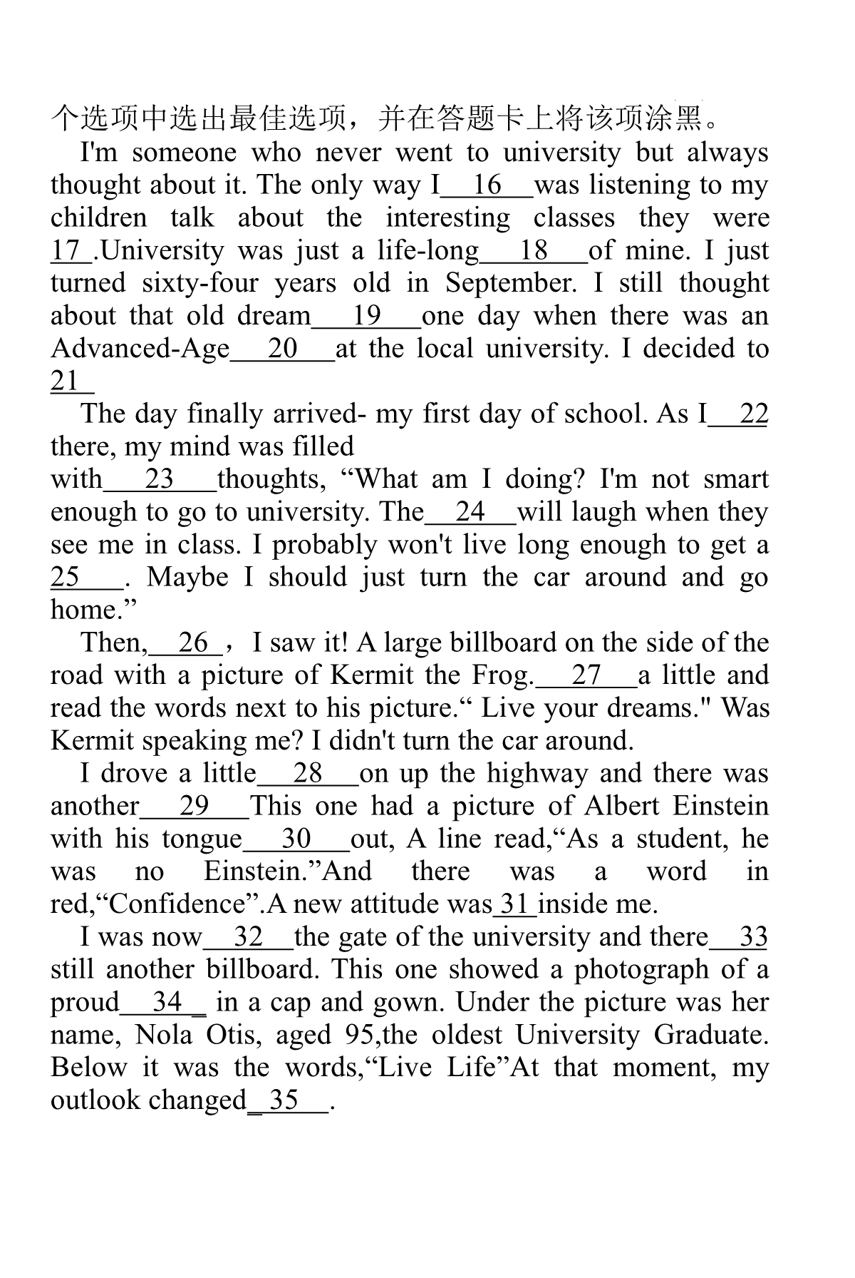 点击下载2019年江苏省提前招生真题卷(英语)