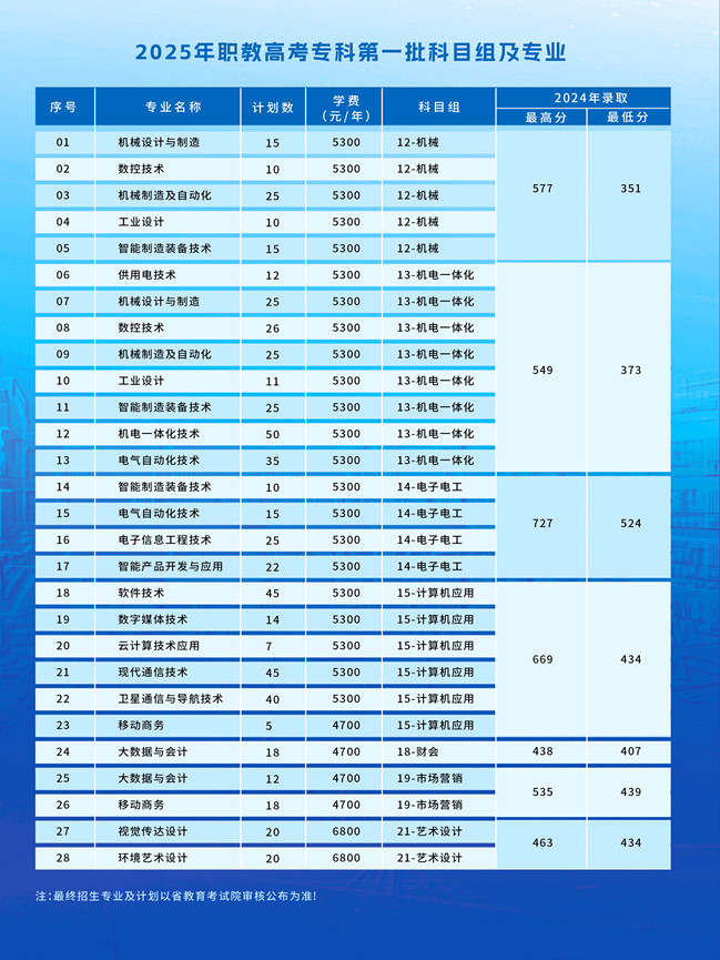 职教高考专科第一批招生计划