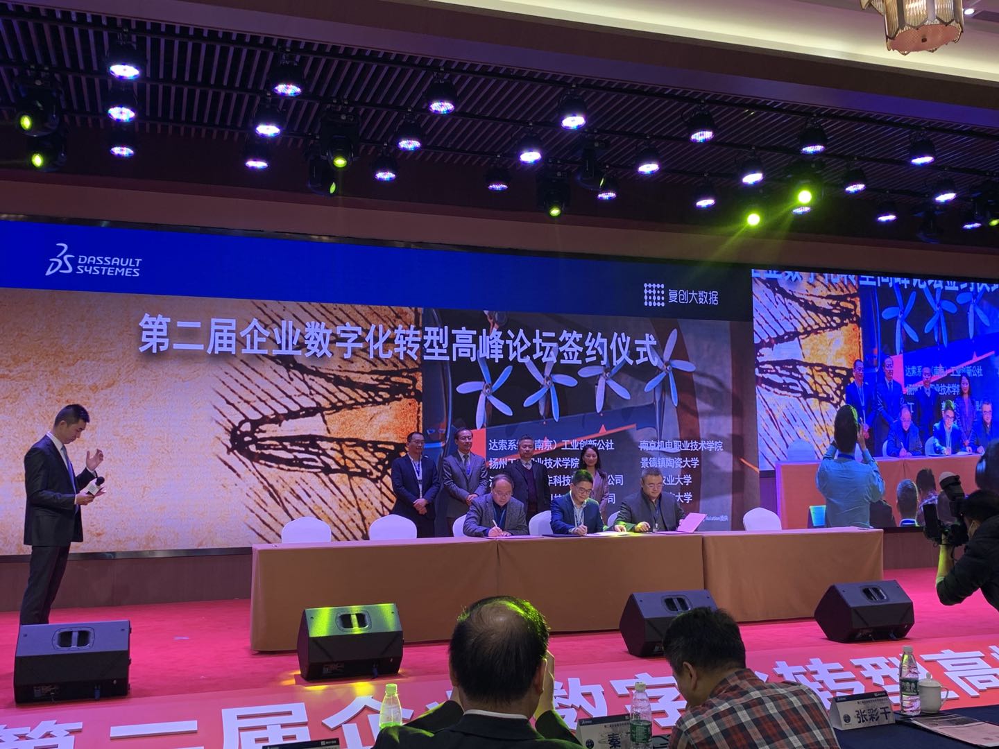 2020年11月25日,世界智能制造大会首场活动——第二届企业数字化转型高峰论坛签约仪式在南京未来科技城举行,签约仪式上,乐玩体育智能制造学院与法国达索系统公司(南京)工业创新公社正式签署产学研战略合作协议,并达成共建南京机电达索创新中心的共识。乐玩体育副院长刁爱军、智能制造学院执行院长潘理平、专业教师吴芬等参加合作签约仪式。