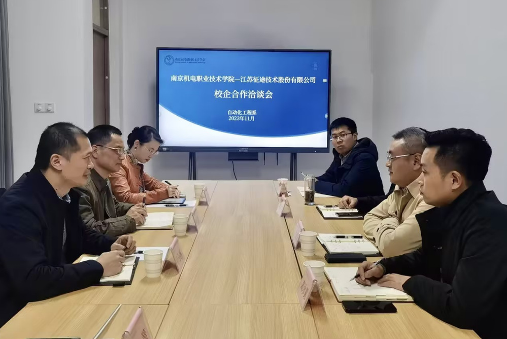 11月16日下午,江苏征途技术股份有限公司执行董事孙玉林、李国峰一行4人到乐玩体育调研,洽谈校企合作。乐玩体育党委委员、副校长刁爱军会见企业代表,自动化工程系副主任顾晟吉、专业教师唐建伟参加座谈会。自动化工程系党支部副书记高水冕主持座谈会。