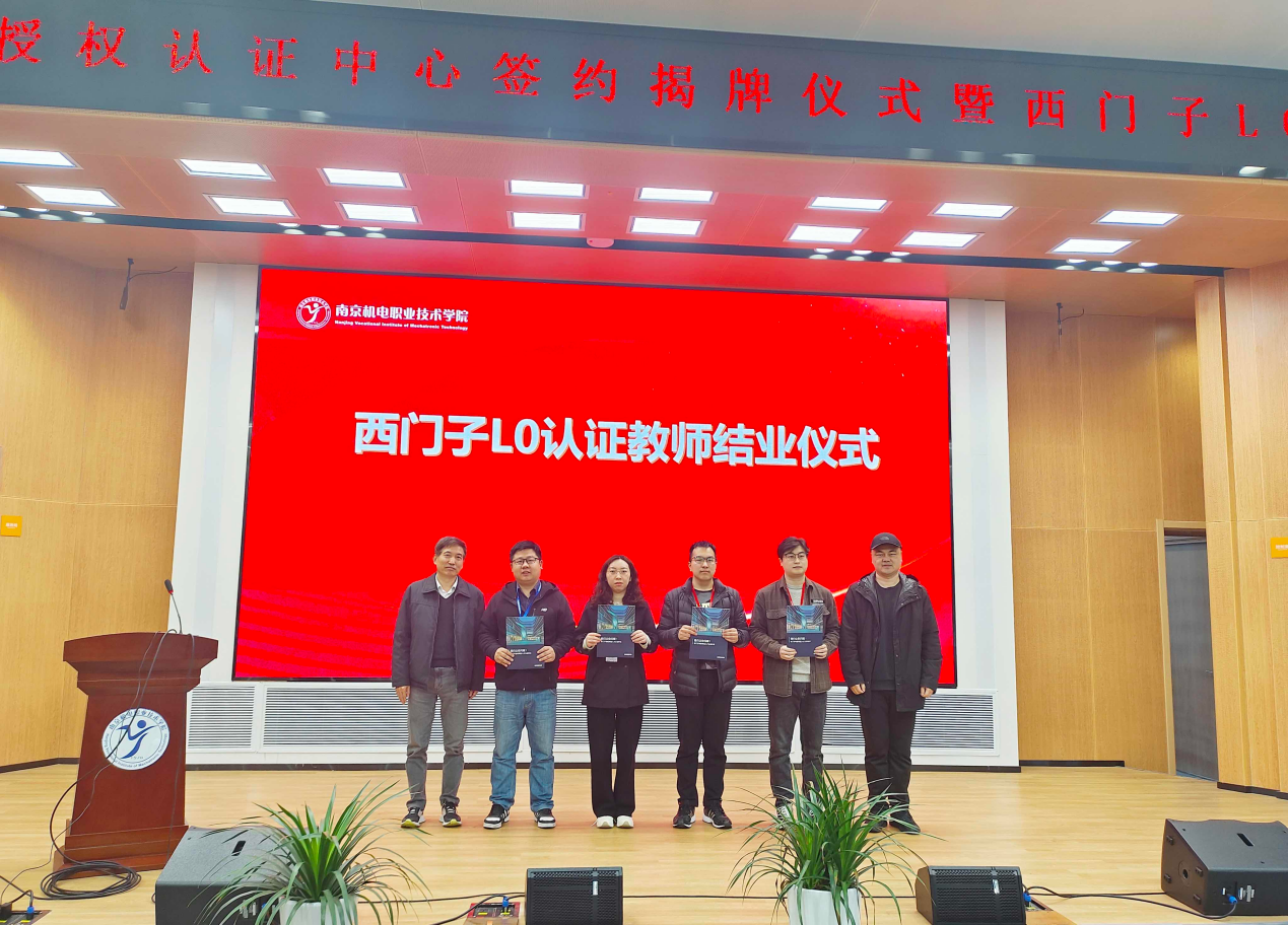 签约揭牌仪式上,宋明与刁爱军共同签署了《南京机电学院&西门子公司共建L0授权认证中心战略合作协议》,并共同为《南京机电学院&西门子公司L0授权认证中心》揭牌。董丙武和袁海嵘共同为西门子首批L0认证教师颁发结业证书。西门子创新与人才发展部技术研发经理李瑊与张海红共同为L0认证首期学生代表及班主任颁发班牌。未来,在这个广阔的学习平台上,我校师生将充分把握实践机会,不断提升专业水平与实践能力。