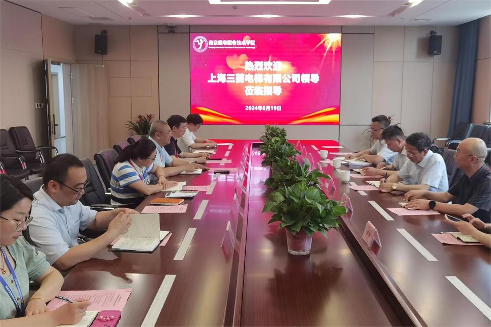 2024年6月19日,上海三菱电梯有限公司华宁路分部总经理王水来、教育培训部教务长朱武标,上海三菱电梯江苏分公司总经理徐刘平等一行莅临乐玩体育,就深化电梯产业学院建设召开校企合作交流洽谈会。学校党委委员、副校长刁爱军、自动化工程系副主任张海红、副主任顾晟吉、党支部副书记杨军、培训处副处长周云龙和科研及校企合作处相关人员参加洽谈会。