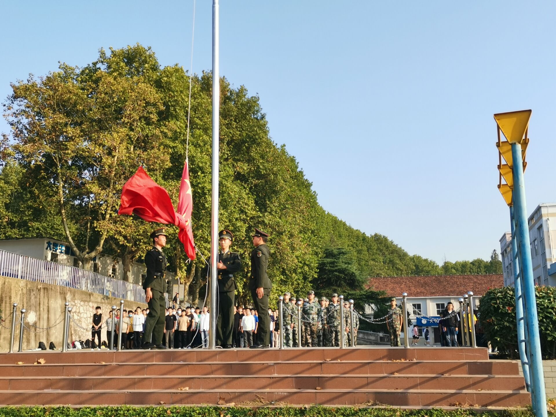 在全体师生的注目下,五星红旗冉冉升起,伴随着国歌,在场师生敬礼仰注,心中一团团热火开始燃烧,为我们伟大祖国的日益繁荣昌盛而自豪。