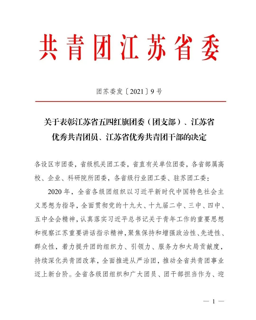 日前,共青团江苏省委下发《关于表彰“江苏省五四红旗团委(团支部)”、“江苏省优秀共青团员”“江苏省优秀共青团干部”的决定》(团苏委发﹝2021﹞9号),我系团总支书记潘久伟老师被评为2020年度“江苏省优秀共青团干部”。