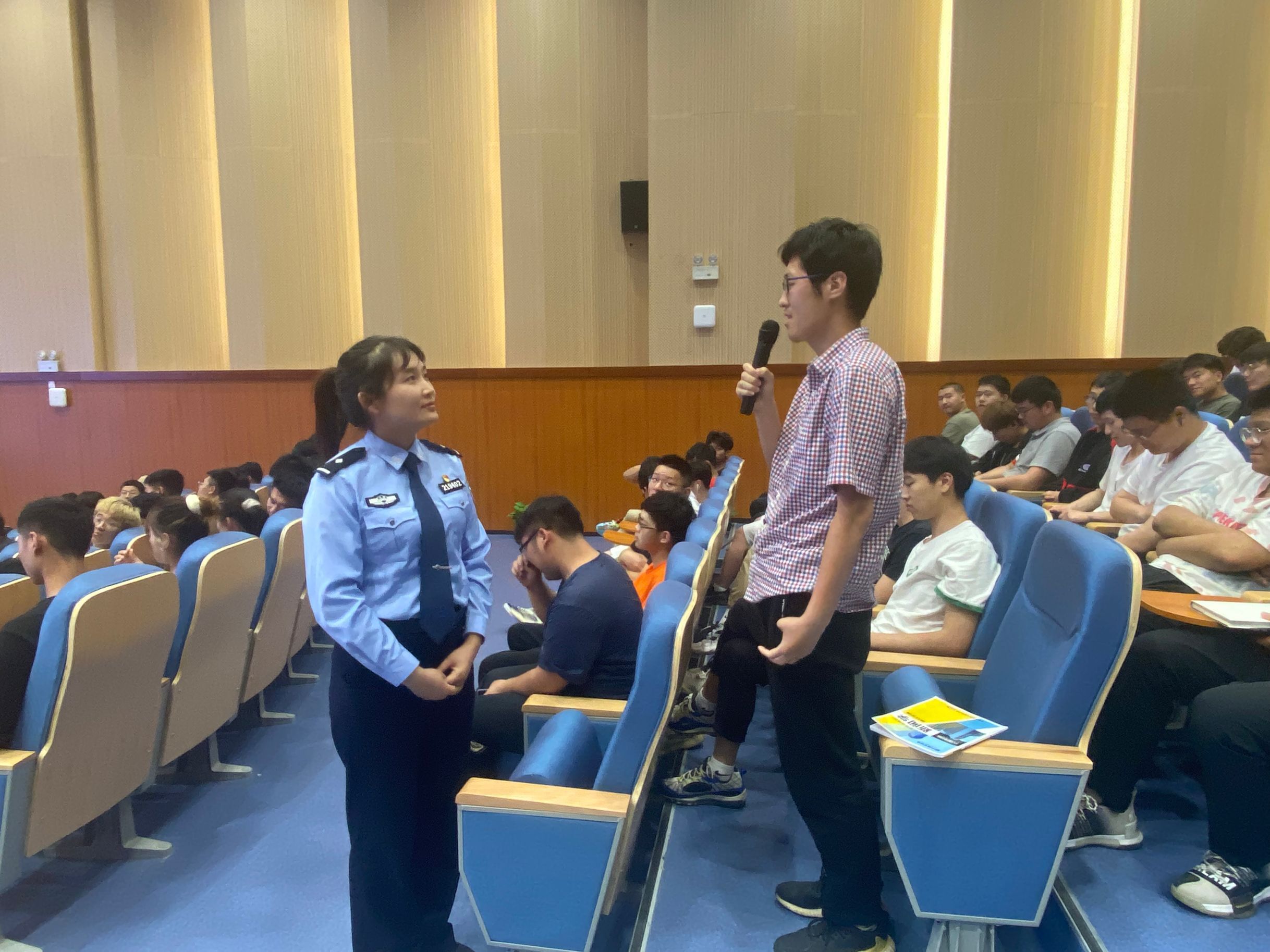 在听了何警官的讲座后,同学们热情高涨,并与何警官进行了亲密的互动。在互动中,何警官热情回答了同学们的所提的问题,同学们从中学到了很多预防诈骗的知识、了解了相关法律规定、并听取了何警官对于防诈骗的宝贵建议。他强调,同学们一定要注册“金钟罩”,保护好自身财产安全,远离诈骗陷阱。