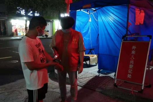 吴钲明是我系2021级的新生,他在家乡五烈镇甘港村做一名志愿者,对于工作内容,他是这样描述的:“我就是到街道居民点宣传防疫防控、对外地返乡进行登记排查及时上报到居委会等等,都是一些简单的事。”天气炎热,但是工作时的吴钲明没有一丝抱怨,仍然用最热情的状态去迎接每一位居民,他笑着说:“作为一名大学生,有义务为社会服务,虽然我不能像医护人员一样去做专业的核酸检测,但是我想我也能为抗击疫情减轻一些压力。”