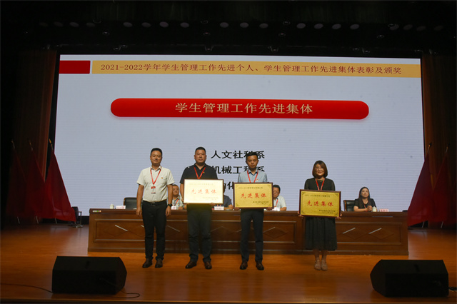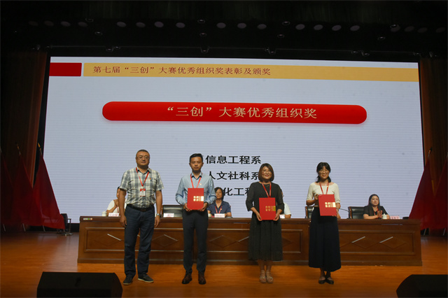 会上,我系获得“专利工作先进集体”、“三创”大赛优秀组织奖、“学生管理工作先进集体”多个荣誉;我系袁佳、武建卫老师获得“专利指导最佳搭档”称号;丁艳玲、武建卫、张海红、潘久伟获得“专利工作先进个人”称号;于靖欢、潘久伟获得“学生管理工作先进个人”称号;俞青获得“优秀辅导员”称号;邢子然获得“优秀教育工作者”称号;丁艳玲、吴芬、袁芬获得“优秀教师”称号;此外,袁芬、丁艳玲作为校外综合管理和技能竞赛获奖代表上台领奖。