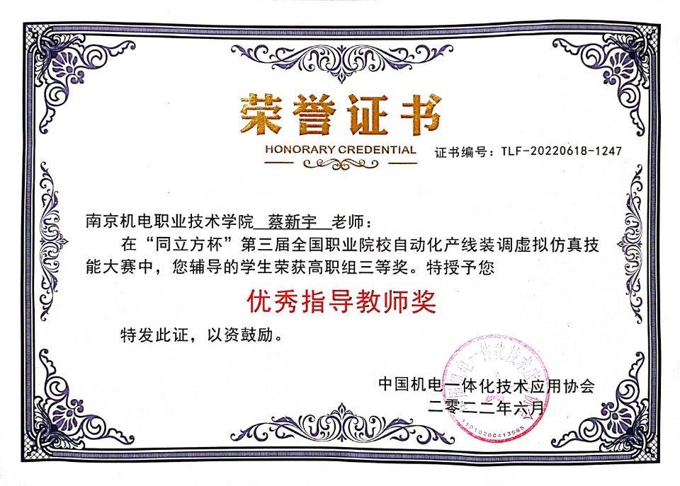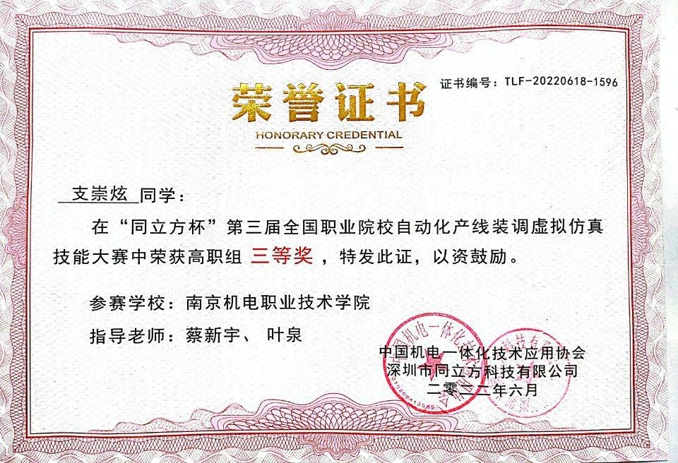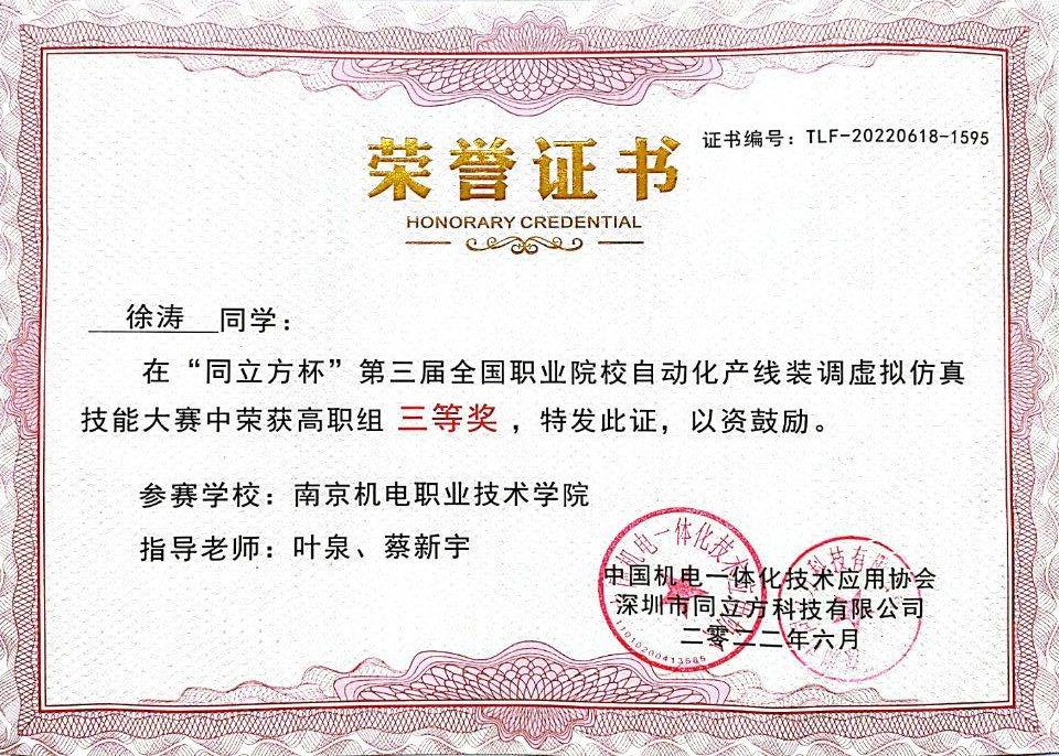 由中国机电一体化技术应用协会主办,深圳市同立方科技有限公司承办的2022年“同立方杯”第三届全国职业院校自动化产线装调虚拟仿真技能大赛于6月18日在线上举行,机器人系统集成竞赛团队积极备赛,竞赛团队成员徐涛、倪诚、支崇炫取得三等奖的成绩