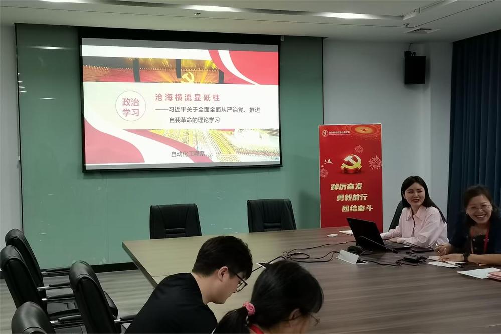 根据学院2023年党委工作重点和党支部政治学习要求,4月18日下午,自动化工程系党支部在育德楼203开展“全面从严治党,推进自我革命”主题政治学习,本次学习由于靖欢老师担任主讲,党支部副书记高水冕主持学习会议。