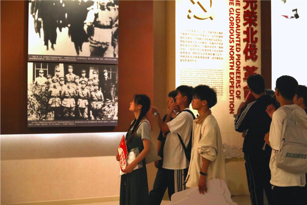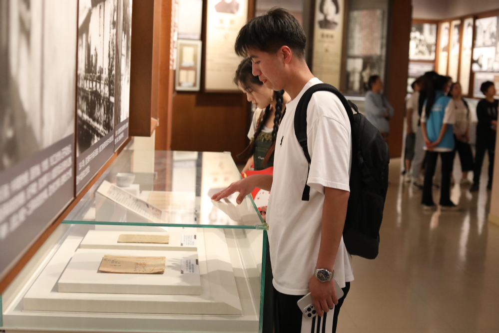 同学们一起走进雨花台烈士纪念馆,这是全国唯一一座综合反映雨花台烈士事迹的革命纪念馆。正门上有邓小平同志亲笔题写的“雨花台烈士纪念馆”,横额的上方用花岗岩雕凿出日月同辉的图案,象征烈士精神与天地共存,与日月同辉。牺牲在雨花台的英烈们平均年龄不足30岁,最小的才16岁。他们短暂的一生,体现了个人命运与国家、民族命运的叠合;而他们的人生故事,映射出中国现代史的脉络。同学们从展出的一件件革命文物中,追忆革命岁月,重温英烈故事,感受到英雄儿女舍身奋进的伟大信仰。