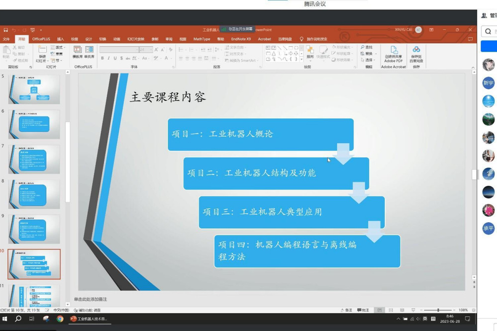 为贯彻落实《高等学校课程思政建设指导纲要》(教高〔2020〕3号)、《乐玩体育“课程思政”建设实施方案(2021年-2023年)》(南机电院委〔2021〕24号)等文件精神,全面推进课程思政教学改革创新,深入挖掘课程思政内涵,强化课程育人导向,挖掘和丰富课程育人内涵,充分发挥课堂教学育人主渠道作用,6月28日上午8点45分,机电一体化教研室在线上组织开展2023年课程思政说课达标赛初赛。本次活动由朱红娟老师主持,机电教研室全体教师出席。