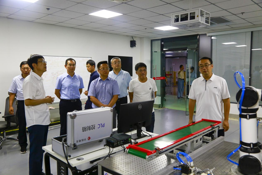 为加快推进智能制造综合实训中心建设,提高智能制造专业技能人才培养水平,8月21日下午,由我校党委书记、院长周庆礼带队,党委委员、副院长刁爱军、自动化工程系副主任顾晟吉、高级督导潘理平一行,前往山东科技职业学院调研考察。