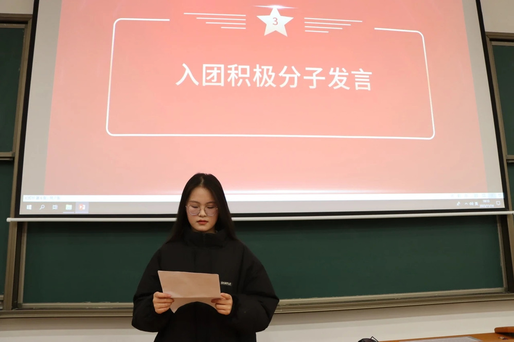 开班仪式在全体师生高亢嘹亮的团歌声中拉开序幕。周笛老师作开班致辞,她希望各位入团积极分子们在学习中做到端正入团动机,树立正确的理想信念,珍惜难得的学习机会,不仅思想上要积极向共青团靠拢,更要将入团的意愿表现在行动上、学习中。随后入团积极分子代表发言,表示出坚定的信心与信念,不忘初心、牢记使命。会议最后,团总支副书记陈今丰对日后的团课安排进行了说明,此次开班仪式在热烈的掌声中落下帷幕。