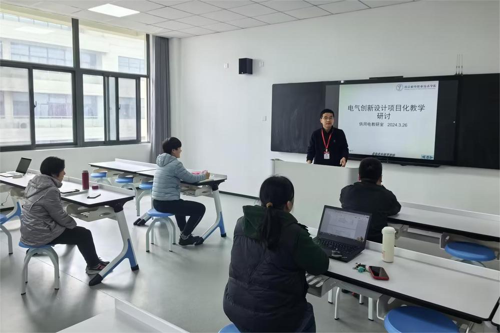为提升教学质量,活跃班级气氛,让学生更好地融入课堂,做课堂的主导者,3月26日,供用电技术教研室在敏行楼308开展教研活动,本次教研活动主题是《电气创新设计项目化教学研讨》。