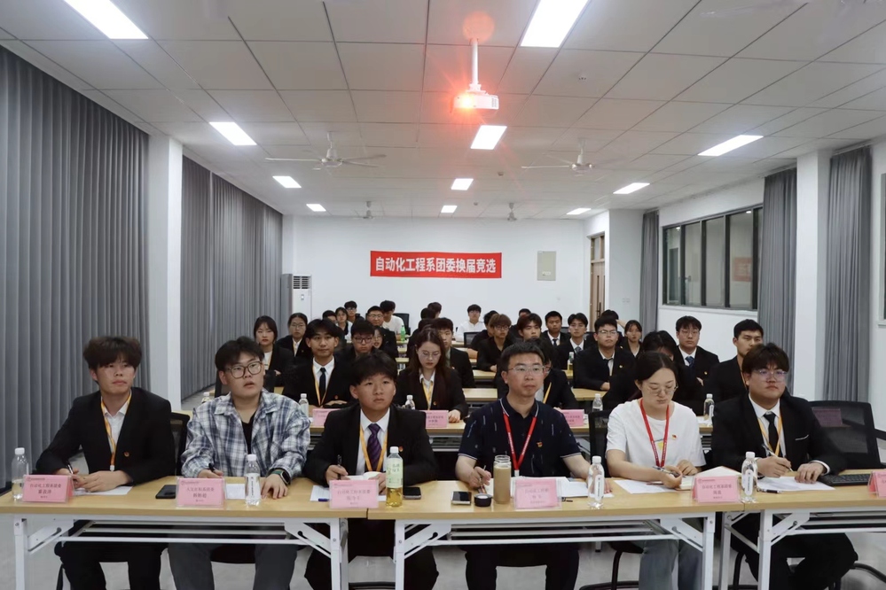 新时代赋予新使命,新时代书写新篇章为深学笃用习近平新时代中国特色社会主义思想和党的二十大精神,认真宣传贯彻习近平总书记关于青年工作的重要思想,全面落实党的群团改革工作,聚焦共青团主责主业,深化改革攻坚,持续壮大一支信念坚定、品学兼优、朝气蓬勃、心系同学的共青团骨干队伍,进一步激发共青团作为党的助手和后备军的责任担当,带领全系团员青年不断为学校高质量发展贡献青春力量,6月4日,自动化工程系团委在敏行楼401开展第十二届团委换届竞选活动。换届竞选活动由刘敏婕同学主持。自动化工程系党支部副书记杨军、团委书记周笛、团委各部门部长以及竞选候选人参加了换届竞选活动。人文社科系团委学生副书记韩贻超受邀观摩换届竞选大会。