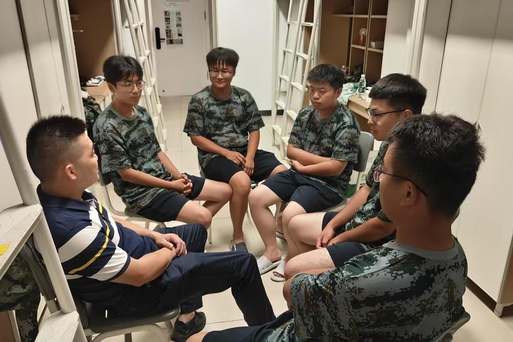军训期间,辅导员们时刻陪伴在学生身边,成为学生坚强的后盾。他们不仅关注学生的身体状况,还积极与学生互动交流。在休息间隙,辅导员走到学生中间,询问他们的训练感受,了解他们在军训中遇到的困难和问题,并给予及时的鼓励和建议。学生也纷纷向辅导员分享自己在军训中的收获和成长,现场气氛温馨而融洽。